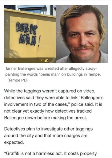 arrow-up1181arrow-down1imageTempe Police arrest man suspected of vandalizing "Penis Man" on buildingslemmy.todaypostcapitalism@lemmy.today to Funny@sh.itjust.worksEnglish · 4 days agomessage-square35linkfedilinkfile-text