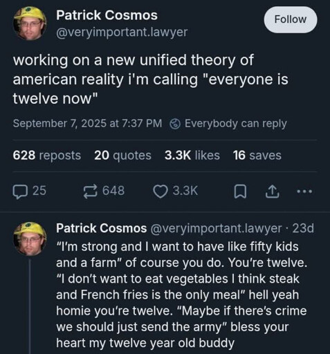 If that seems good to you, please stay out of education. Also, I’m not your friend, please don’t call me that. It’s patronizing. I brought it up because it was relevant to my greater point and was an amusing anecdote about the wrong way to teach dated literature, not because I’m still stuck on a minor event a decade ago. I’ve had far worse experiences with teachers that actually were formative, in the sense that they were traumatic. Traumatizing kids isn’t “pushing them,” it’s just hurting them in their formative years. That teacher didn’t traumatize me, but for someone less confident socially or in their opinions, it easily could have been. Imagine forcing a shy, neurodivergent kid to argue against 20+ other people for 45 minutes about something as divisive as human nature and morality, while simultaneously shutting down any discussion of the author’s racism, which is very relevant to that discussion. That teacher didn’t know me at all. That could’ve been me.