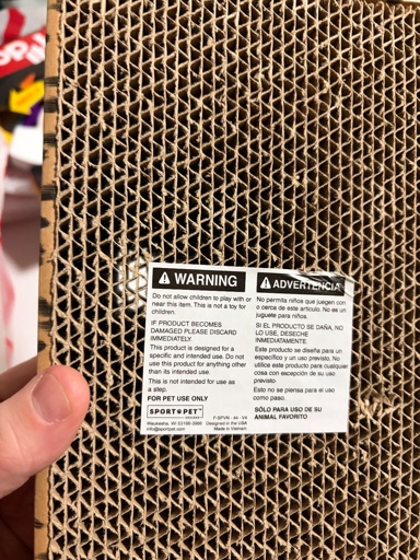 It’s cardboard, not depleted uranium. How the fuck is it so dangerous I must dispose of it if damaged? The entire point of the product is for the furry psychopath that lives with me to damage it. It literally has no other reason to exist.