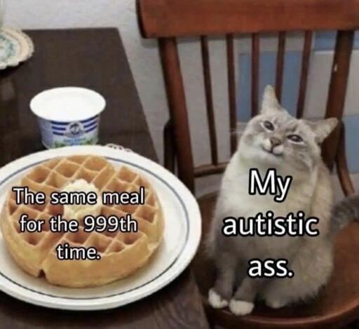 I’ve literally made the same exact meal for breakfast and dinner every single day for the last four years straight. Lunch changed because of an external factor, but I’ve had the same meal for lunch every day for about six months now. The meme isn’t referring to making your favorite meal, it’s referring to making the only thing you eat for that meal, ever.