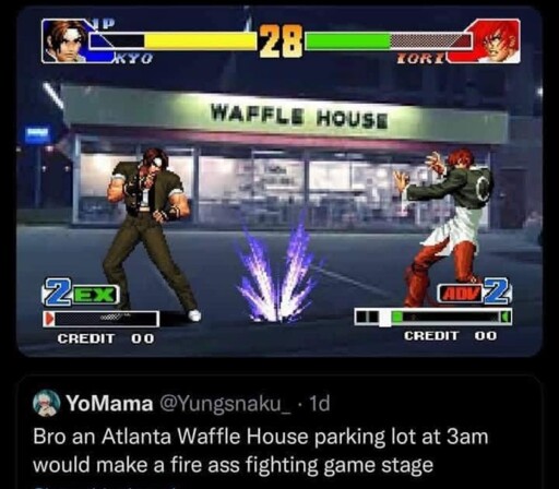 minus-squaresfxrlz@lemmy.worldlinkfedilinkarrow-up9·2 months agoOver here that would be gas stations, and the fighters are middle aged guys with a beer belly