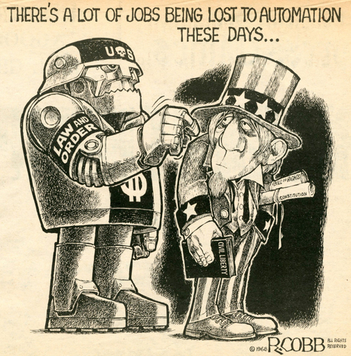 Malevolent use of AI and robotics; intrusive surveillance and abolition of privacy; police brutality and militarism; suppression of civil rights in general and reversal of the rights of minorities; crony capitalism and abuses; violation of existing election laws.