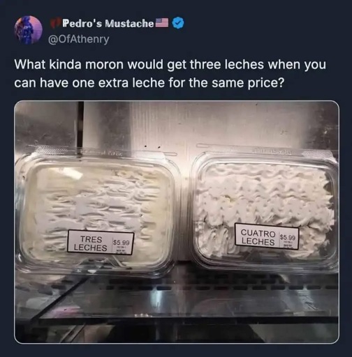 The three original milks are evaporated milk, sweetened condensed milk, and half and half (or heavy cream if you’re feeling nasty), so the fourth milk could be just plain ol’ regular milk.
