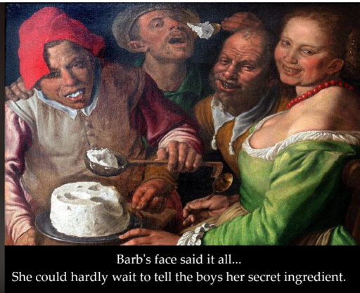 My take away is pussy juice that she keeps saving and when she has enough volume she just whips it up into a creamy sauce