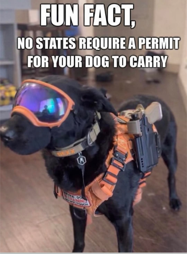 I actually tried to find laws relating to… stowing? carrying? transporting? a gun, in a holster, on a harness, on a dog.