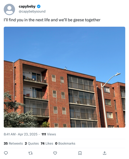 capybeby@sh.itjust.works to Lemmy Shitpost@lemmy.world · 5 months agoGeese on the roof sh.itjust.worksimagemessage-square0linkfedilinkarrow-up11arrow-down10